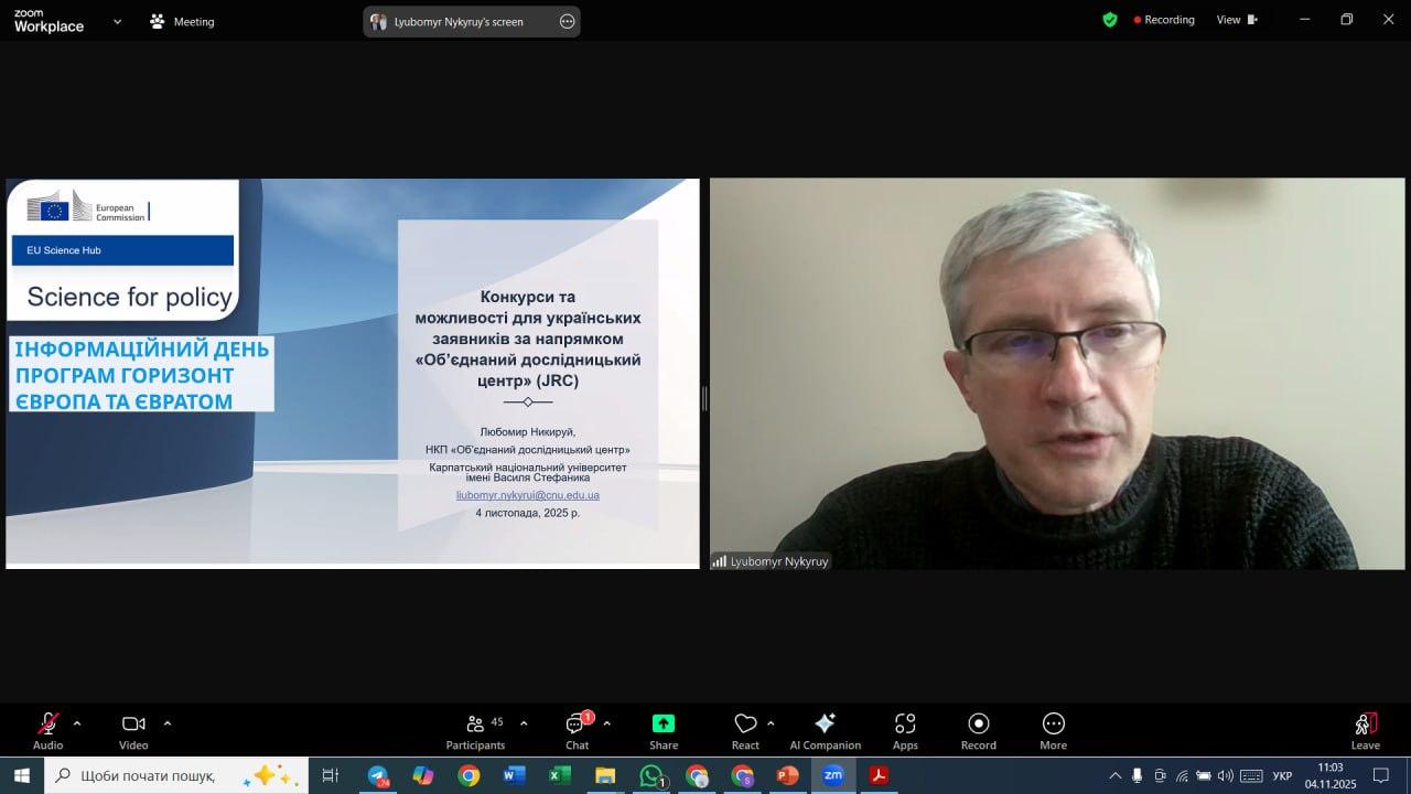 У рамках заходу відбулася презентація можливостей, які надає "Об'єднаний дослідницький центр (JRC)" для українських заявників